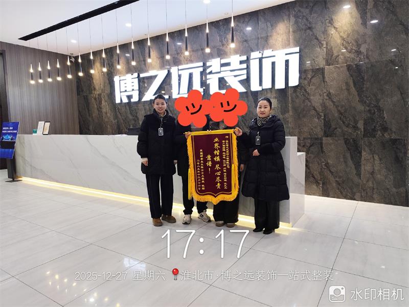 兰墅颐景4栋2502业主在完工后专程送来锦旗,向项目经理汪孔杰,设计师闫敏,客户部经理赵金花表达诚挚感谢,