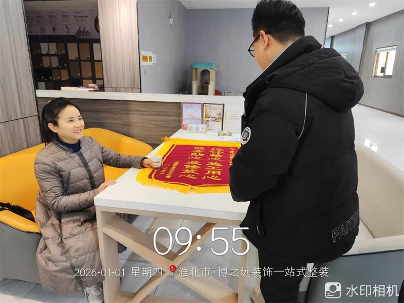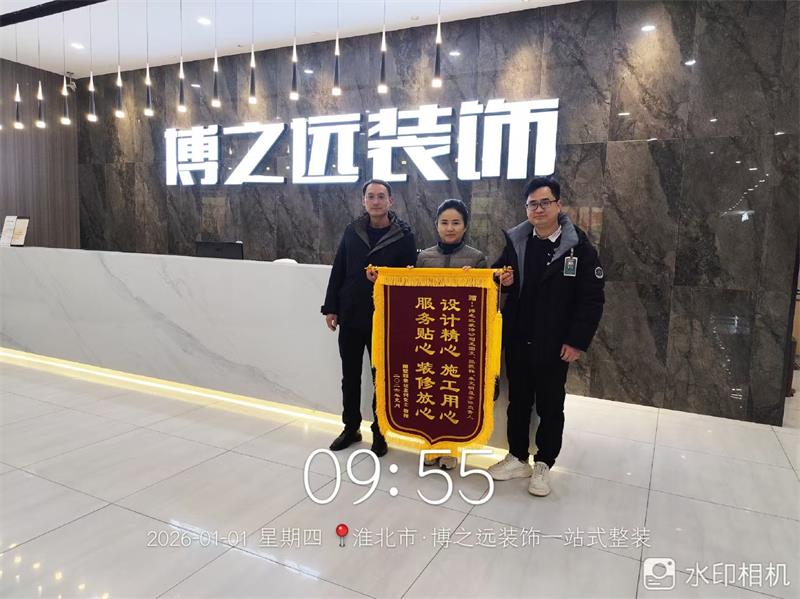 新年第一天,兰墅颐景2栋2201业主在完工后专程送来锦旗,向项目经理张振祥,设计师王国文,