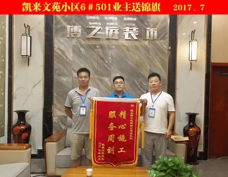 今天的合影都是全家总动员: 翰林学府业主今天在公司签下装修合同; 国购小区业主今天在公司签下装修合同; 淮海翰府小区16栋705今天开工大吉; 永利广场1404今天开工大吉; 矿务局处长楼1栋504业主今天送来锦旗; 博...