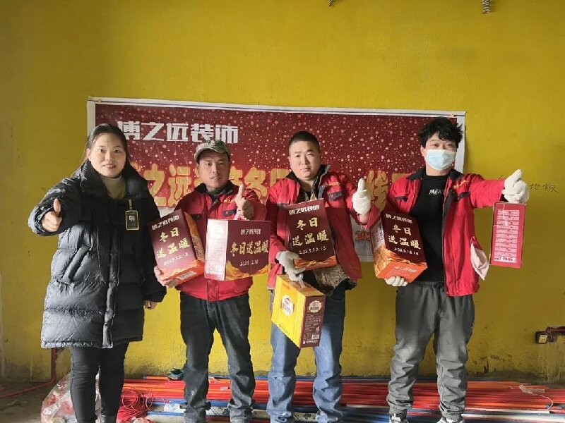 严寒天气到来,博之远装饰工人师傅依然坚守在工地一线,12.18日早晨,博之远工作人员带去成箱的面包、糕点,慰问一线工人师傅,带去冬日温暖。