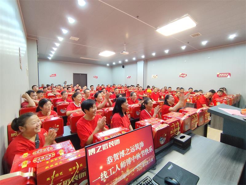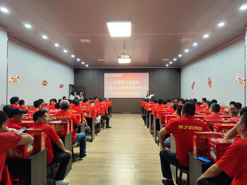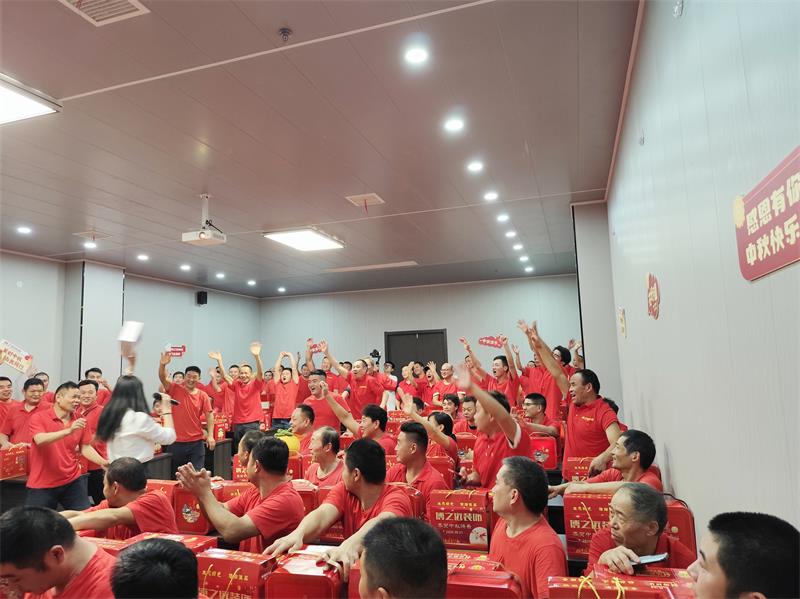 今日工人师傅们齐聚公司合影留念,共同领取这份专属心意。在此预祝全体同仁中秋快乐,阖家安康,月圆人安,感恩有你!