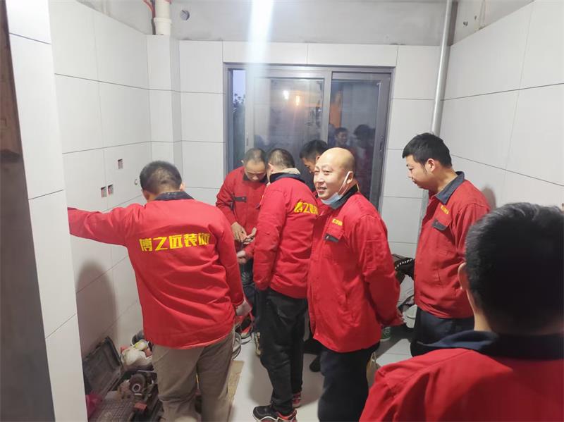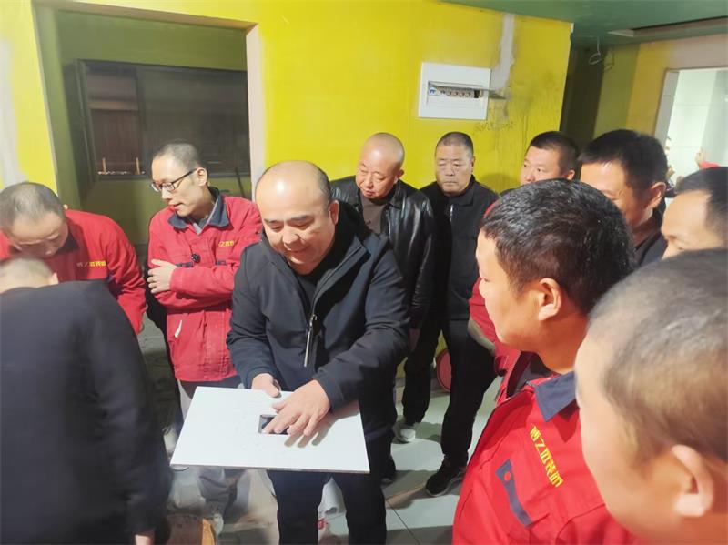 工程部组织项目经理与瓦工师傅齐聚紫郡府工地,针对线盒盖开孔工艺进行现场学习与交流。